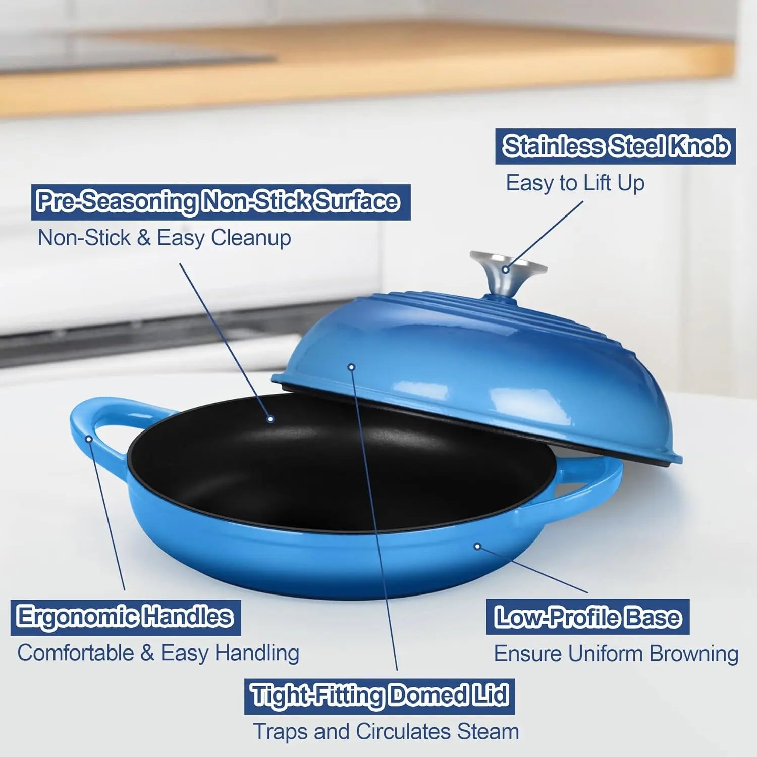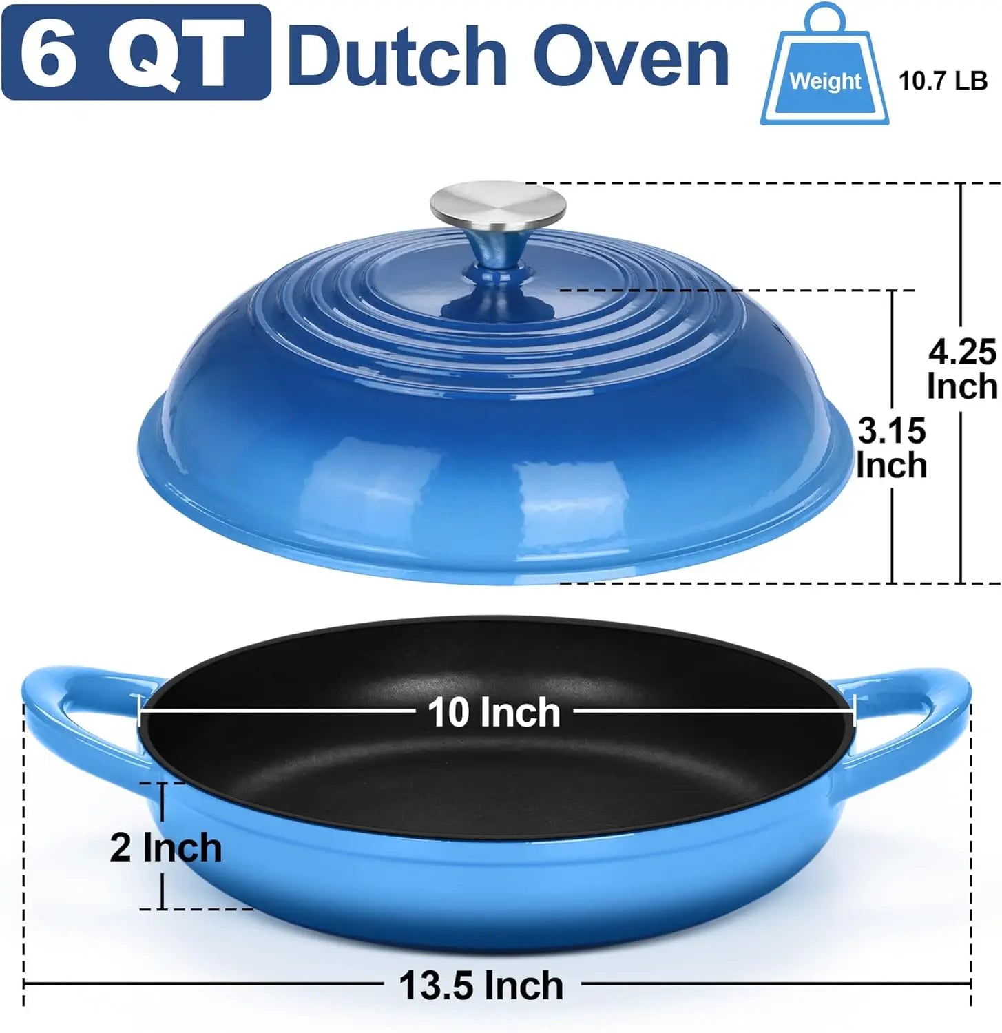 - Premium Material: Thick cast iron core with enameled exterior and pre-seasoned interior for durability and even heating.