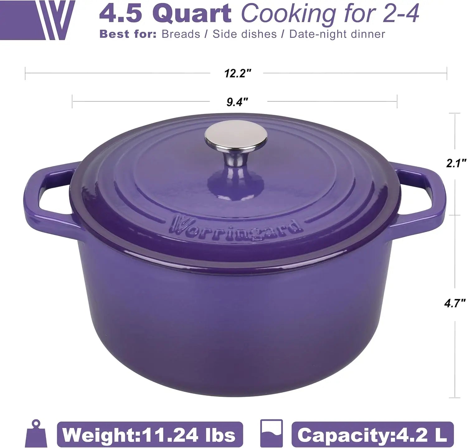 Nonna Bella 4.5Qt Enameled Cast Iron Dutch Oven with Baking Set – Purple